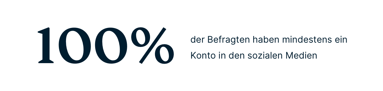 Es überrascht nicht, dass jeder Befragte mindestens ein Social-Media-Konto hat. Instagram, TikTok und Snapchat sind die Favoriten unter der jungen Generation von Nutzern. Hervorzuheben ist, dass trotz der vielen Zeit, die fast alle Befragten in den sozialen Medien verbringen, ein Großteil von ihnen besorgt über die Sucht-Effekte ist; Menschen ohne ein Social-Media-Konto werden zum Teil sogar beneidet.