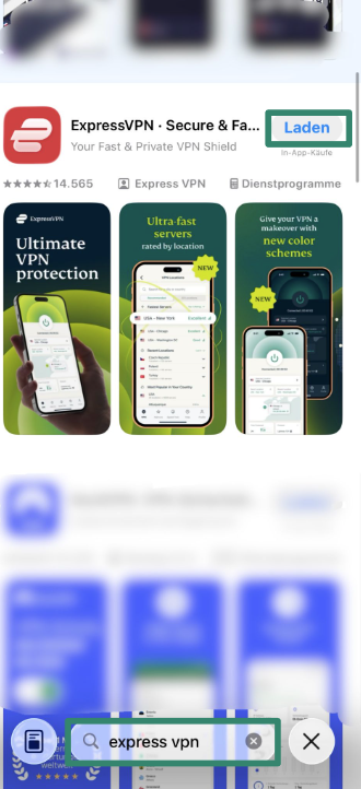 - Suche nach ExpressVPN und tippe auf „Laden", um die App auf Deinem Gerät zu installieren.