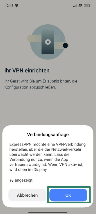 - Erlaube ExpressVPN, VPN-Verbindungen einzurichten, wenn Du dazu aufgefordert wirst.