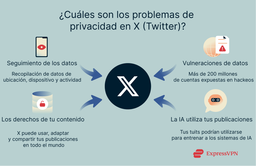 Pero aún hay más. Twitter o X también controla el uso que haces de la plataforma: las publicaciones, los «me gusta», los mensajes directos, el historial de visionado, los usuarios con quienes interactúas y tu ubicación aproximada. A su vez, recopila información sobre tu dispositivo y tu conexión (como la dirección IP y el navegador) y puede asociar tu cuenta a otros dispositivos o servicios que utilices.
