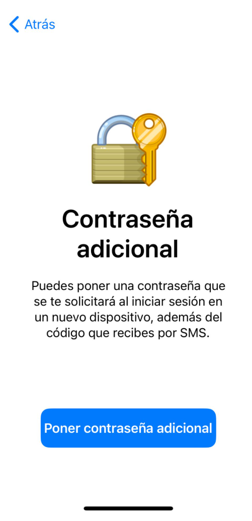 - Sigue las indicaciones en Establecer una contraseña adicional.