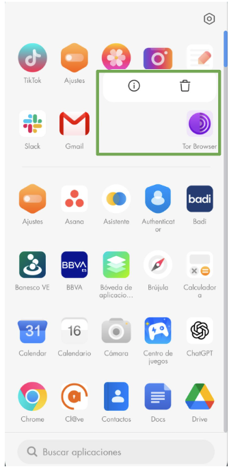 - Mantén pulsado el icono hasta que aparezca un menú.