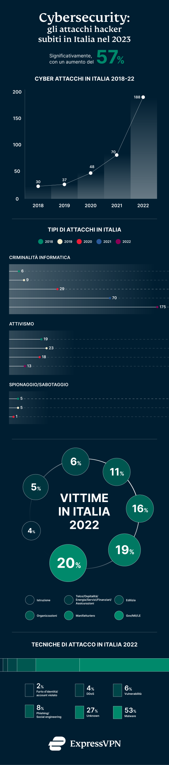Nel 2022, il settore che ha potuto vantare il triste primato nel numero di attacchi cibernetici ricevuti è quello governativo: il 20% degli hackeraggi totali è stato perpetrato contro siti dei Ministeri o contro i sistemi che fanno capo all’Esecutivo. Anno nuovo, stessa solfa: il trend sembra infatti confermarsi nel 2023, quando tre dei casi più eclatanti di manomissione informatica hanno interessato proprio il Governo.