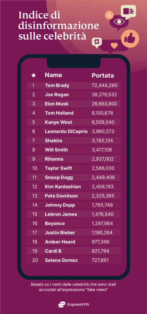Le 20 principali celebrità associate alle "fake news" nel 2022