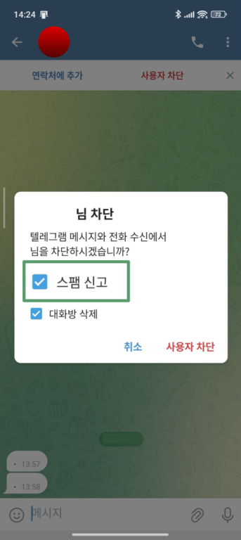 사기 사용자나 그룹을 신고하면 Telegram이 사기 계정을 찾아내고 차단하는 데 도움이 됩니다..