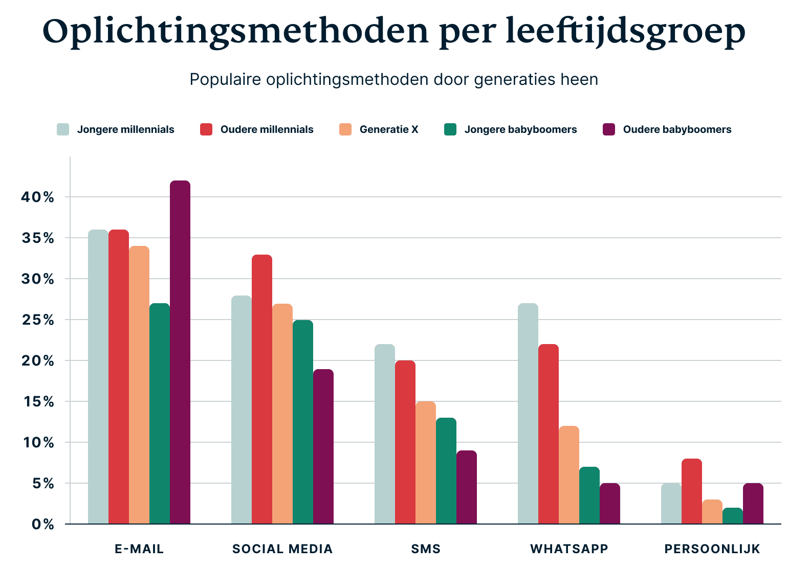 | Tool | Jongere millennials | Oudere millennials | Gen X | Jongere boomers | Oudere boomers |