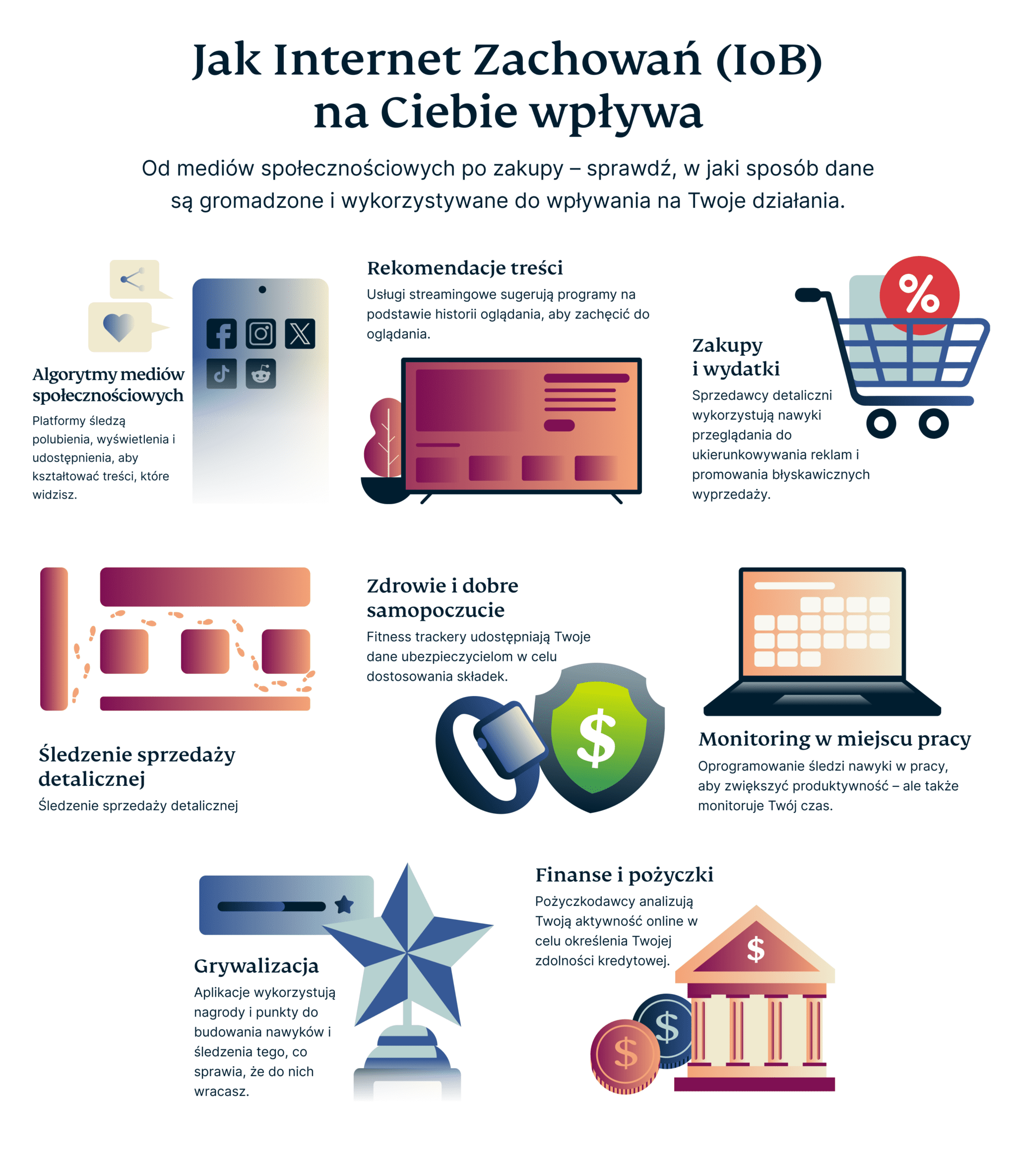 - Od algorytmów mediów społecznościowych i rekomendacji streamingowych po śledzenie handlu detalicznego i finanse, IoB wpływa na wszystko – często przekraczając granicę między użytecznością a natarczywością.