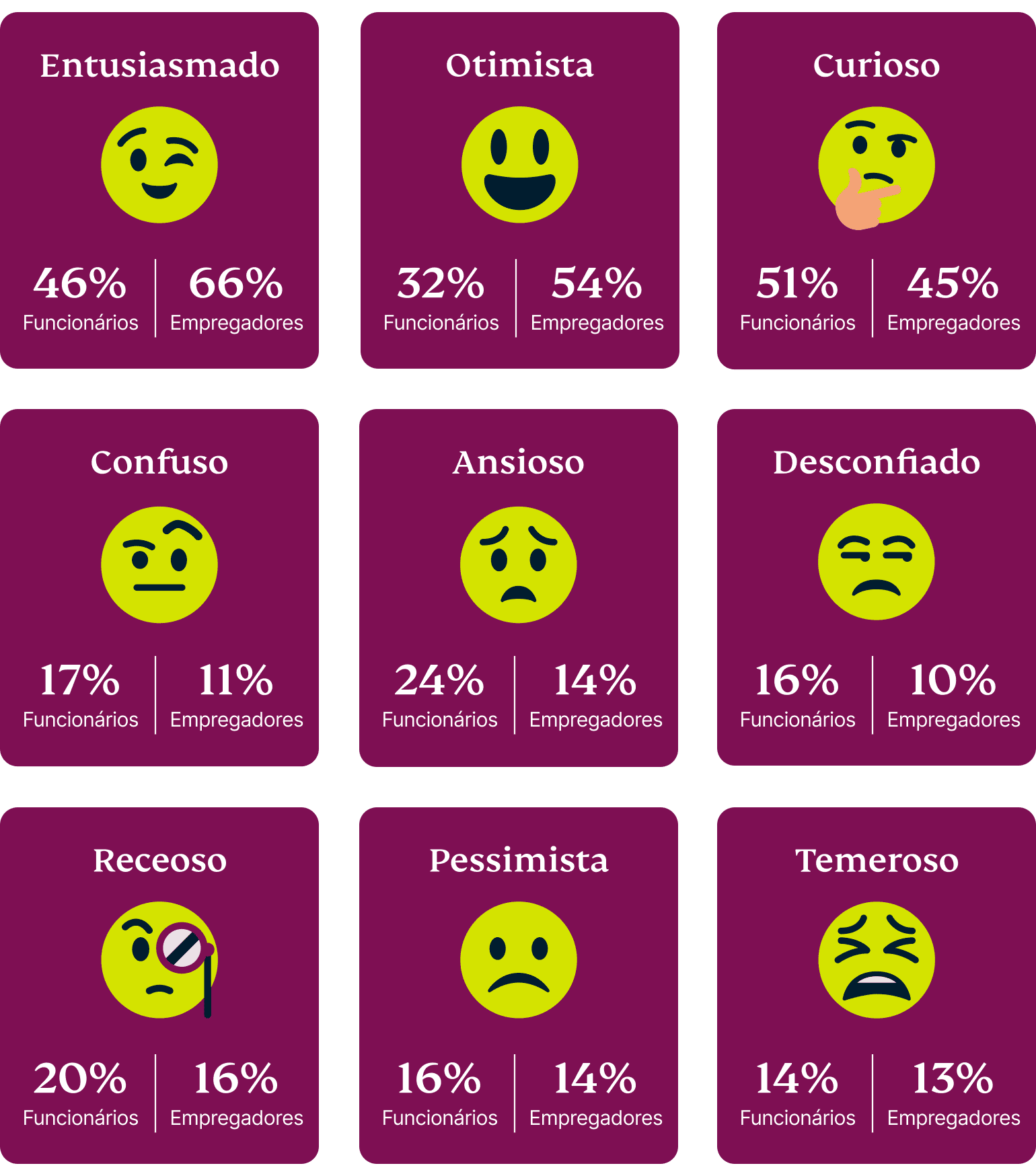 Os empregadores são muito mais propensos a expressar entusiasmo, curiosidade e otimismo quando se trata da perspectiva de um local de trabalho metaverso, enquanto os funcionários tendem a mostrar ansiedade e desconfiança.
