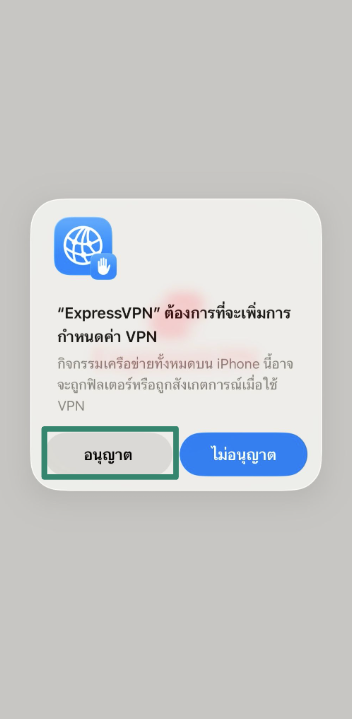 - แตะ อนุญาต ตอนที่ปรากฏ เพื่ออนุญาต ExpressVPN และเพื่อเพิ่มการกำหนดค่า VPN