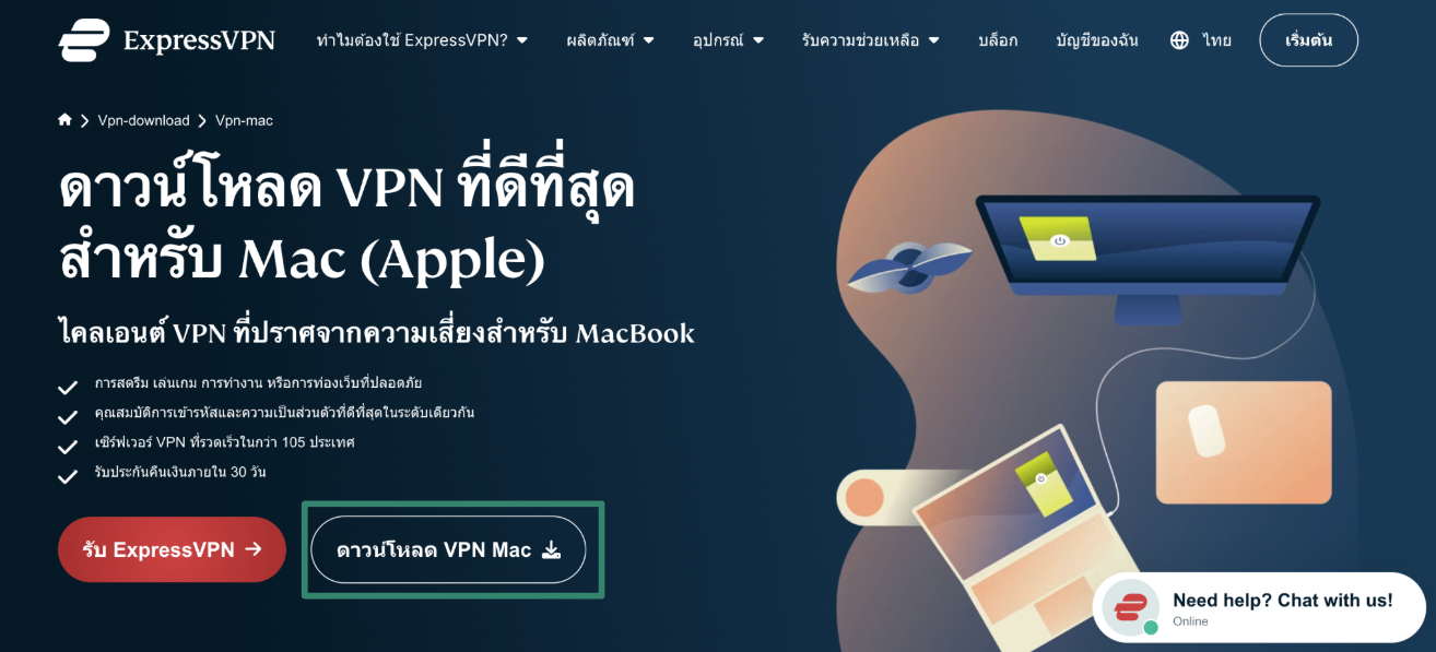 - ดาวน์โหลดแอป ExpressVPN สำหรับ macOS จากเว็บไซต์ทางการ