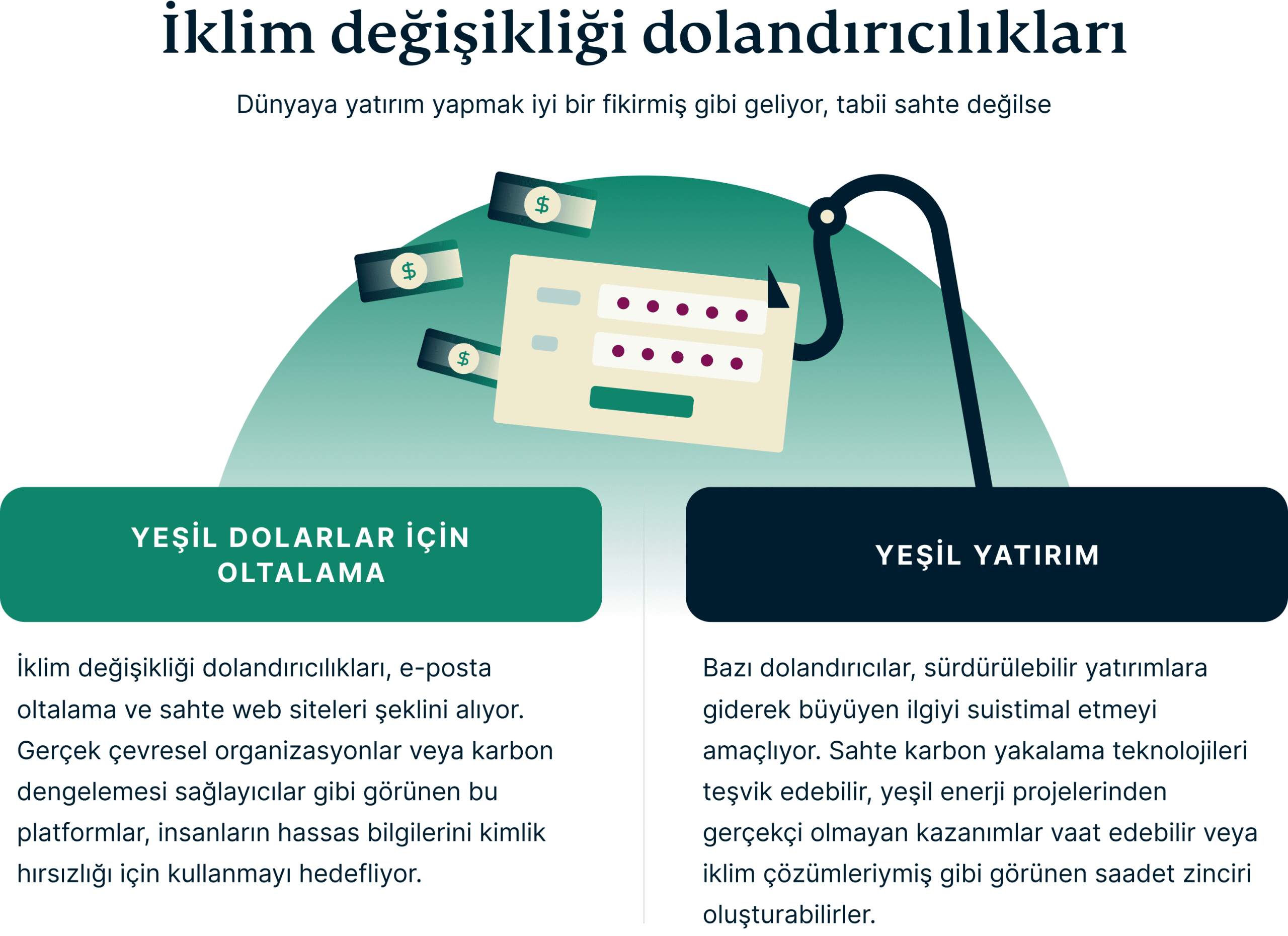 Ciddi bir küresel sorun olan iklim değişikliği, ne yazık ki dolandırıcılar için de verimli bir konu hâline geldi. Endişelerden ve çözümün bir parçası olma arzusundan faydalanan bu hilekarlar, ekoloji dostu inisiyatifler gibi görünen bir düzenbazlık ağı örüyor.