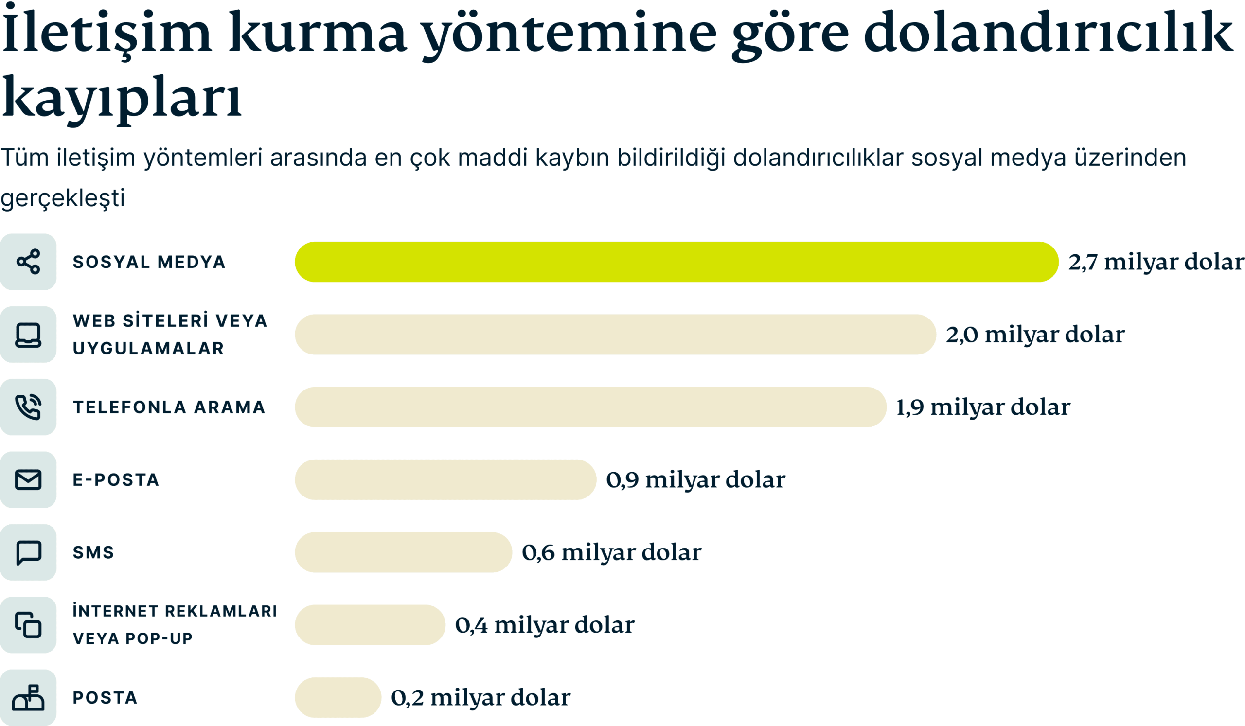 Sosyal medya platformları, 2023 yılında dolandırıcılık aktiviteleri için verimli bir yuva oldu ve Amerikalılar yalnızca sosyal medya dolandırıcılıklarında 2,7 milyar USD kaybetti. Dolandırıcılar, bu platformlardan giderek daha fazla faydalanıyor ve farkında olmayan mağdurları tuzağa düşürmek için bu platformların sundukları güven ve kapsamlı erişimi suistimal ediyor.
